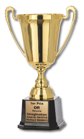 2ème coupe d’OR pour l’œuvre « Imagination » qui vient de recevoir la 1ère place aux Awards de la galerie ArtQuid de juin 2019 !
